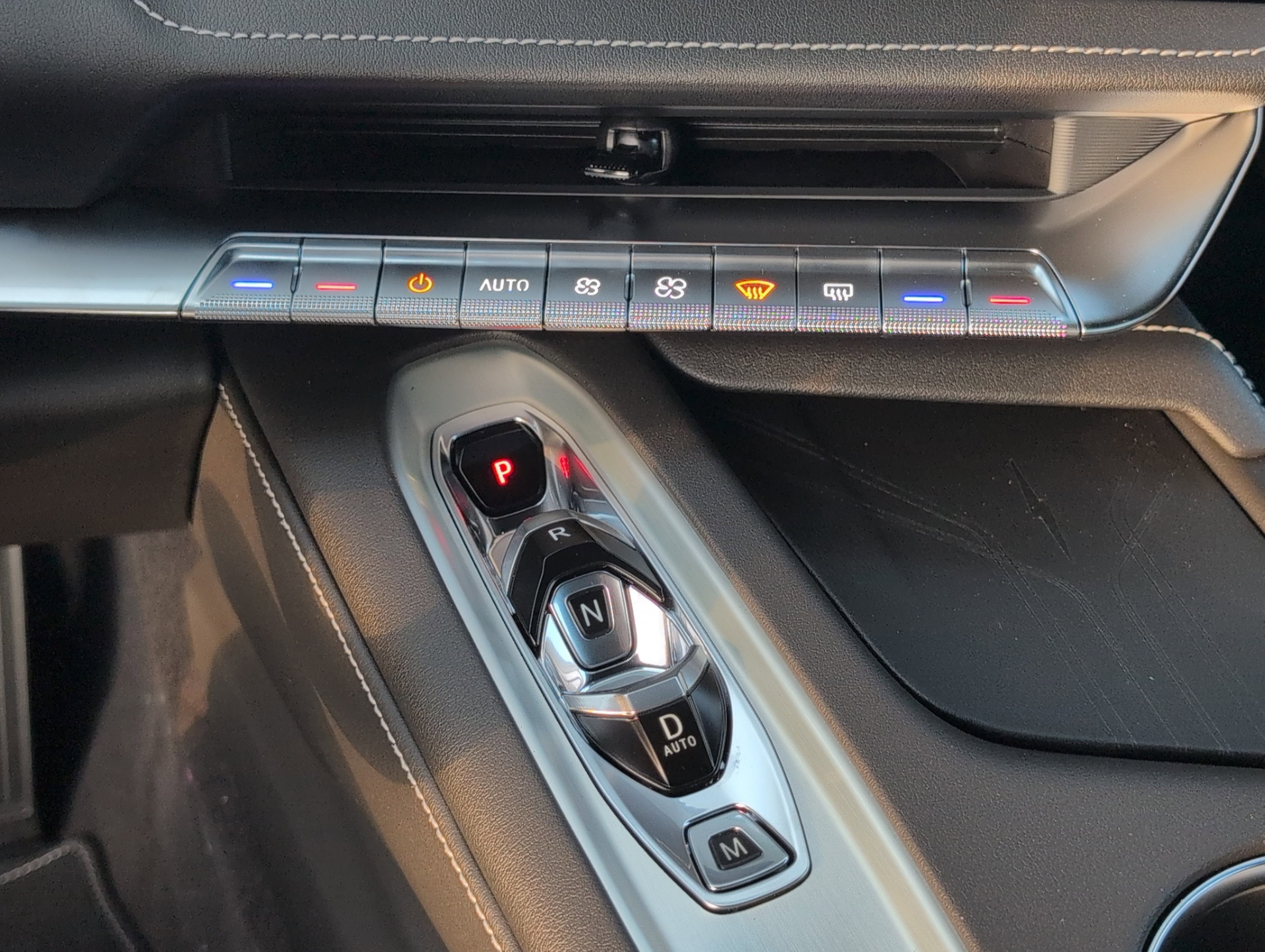 - Console, floor 2 cup holders, auxiliary power outlet, 3 USB ports (2 type-C, 1 type-A), passenger grab handle and lockable storage
