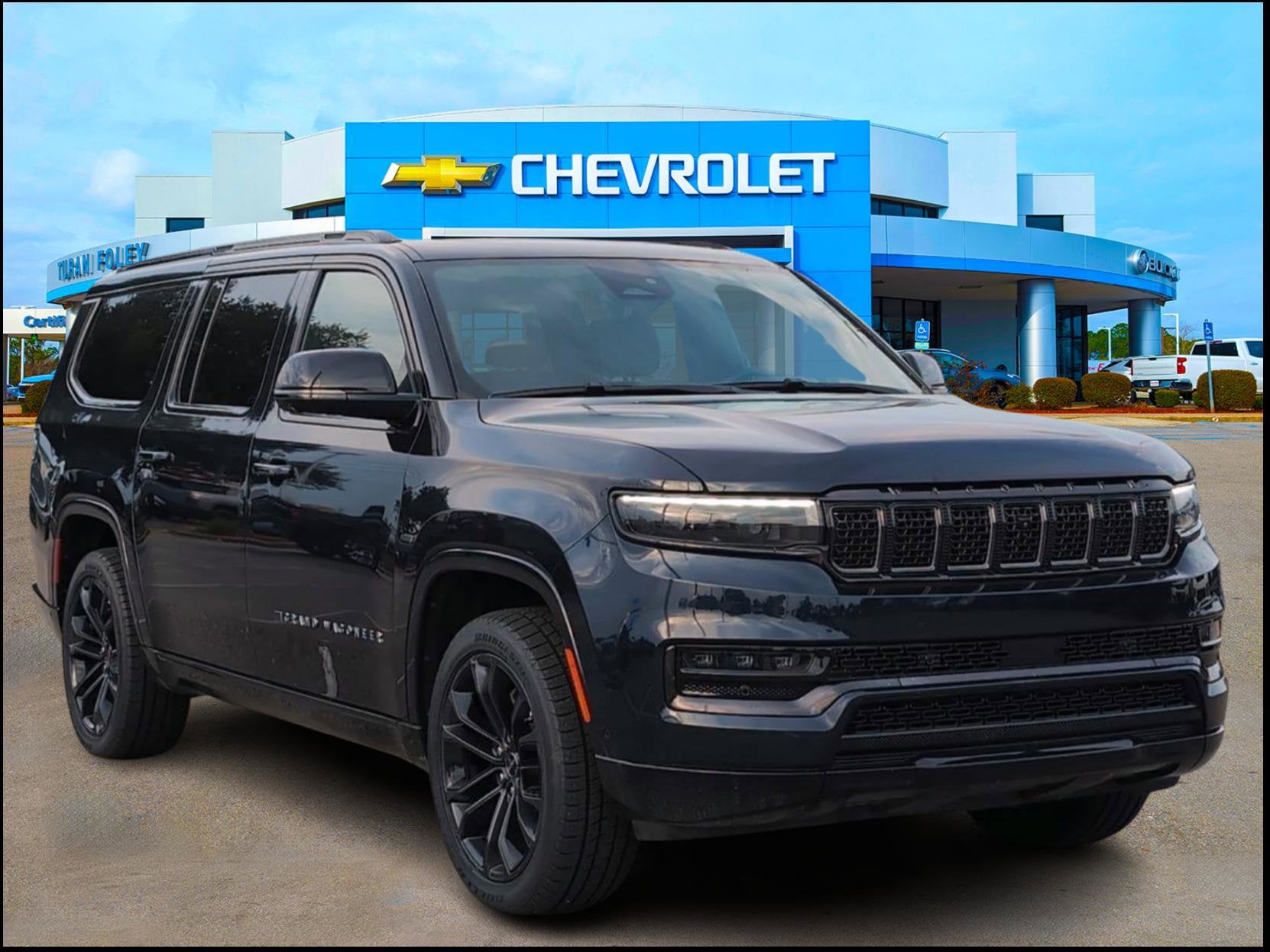 2024 Jeep Grand Wagoneer L Series II Black Roof, Heads-Up Display, Obsidian Appearance Package, Power driver seat, Power Liftgate, Power moonroof, 19 Speakers, 23 Speaker McIntosh Reference Audio System, 3.92 Rear Axle Ratio, 3rd row seats: bench, 4-Wheel Disc Brakes, ABS brakes, Adjustable pedals, Adjustable Roof Rail Crossbars, Air Conditioning, Alloy wheels, AM/FM radio: SiriusXM with 360L, Anti-whiplash front head restraints, Apple CarPlay/Android Auto, Audio memory, Auto High-beam Headlights, Auto-dimming door mirrors, Auto-dimming Rear-View mirror, Auto-leveling suspension, Automatic temperature control, Black Interior Accents, Brake assist, Bumpers: body-color, Compass, Delay-off headlights, Driver door bin, Driver vanity mirror, Driver's Seat Mounted Armrest, Dual front impact airbags, Dual front side impact airbags, Electronic Stability Control, Emergency communication system, Four wheel independent suspension, Front anti-roll bar, Front Bucket Seats, Front Center Armrest w/Storage, Front Console Cooler, Front dual zone A/C, Front fog lights, Front Passenger Interactive Display, Front reading lights, Fully automatic headlights, Garage door transmitter, Genuine wood console insert, Genuine wood dashboard insert, Genuine wood door panel insert, Gloss Black Upper & Lower DLO Molding, Heated door mirrors, Heated front seats, Heated rear seats, Heated steering wheel, Illuminated entry, Knee airbag, Leather steering wheel, Leather Trimmed Bucket Seats, Low tire pressure warning, Memory seat, Navigation System, Normal Duty Suspension, Occupant sensing airbag, Outside temperature display, Overhead airbag, Overhead console, Panic alarm, Passenger door bin, Passenger seat mounted armrest, Passenger vanity mirror, Pedal memory, Piano Black Exterior Accents, Power adjustable front head restraints, Power door mirrors, Power passenger seat, Power steering, Power windows, Quick Order Package 28T Obsidian, Radio data system, Radio: Uconnect 5 Nav w/12.0" Display, Rain sensing wipers, Rear air conditioning, Rear anti-roll bar, Rear dual zone A/C, Rear reading lights, Rear seat center armrest, Rear window defroster, Rear window wiper, Rearview Autodim Digital Display Mirror, Reclining 3rd row seat, Remote keyless entry, Security system, Speed control, Speed-sensing steering, Speed-Sensitive Wipers, Split folding rear seat, Steering wheel memory, Steering wheel mounted audio controls, Tachometer, Telescoping steering wheel, Tilt steering wheel, Traction control, Trip computer, Turn signal indicator mirrors, Two Tone Paint Group, Variably intermittent wipers, Ventilated front seats, Ventilated Rear Seats, Voltmeter, Wheels: 22" x 9.0" Tinted Polished w/Black Insert, Black Roof, Heads-Up Display, Obsidian Appearance Package, Power driver seat, Power Liftgate, Power moonroof. Midnight Sky